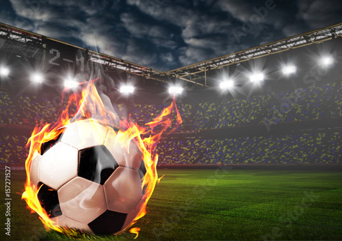 Soccer Or Football Ball On Fire At Stadium Buy This Stock Photo